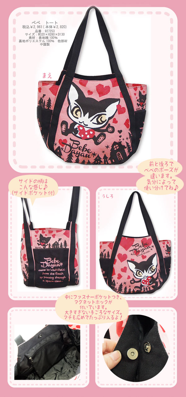 綿100% W320×H280×D130mm 中にファスナーポケットつき、マグネットホックが付いています。大きすぎない手ごろなサイズ。マチも広めでたっぷり入るよ! 中国