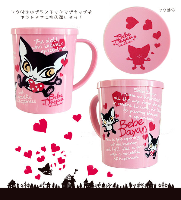 本体:AS樹脂 フタ:PE樹脂 H90×Φ75mm 容量:280ml ほこりを防いだり、ティーバッグを置いたり、ふた付きだと便利な、ベベダヤンのふた付きプラスチックマグ! 日本