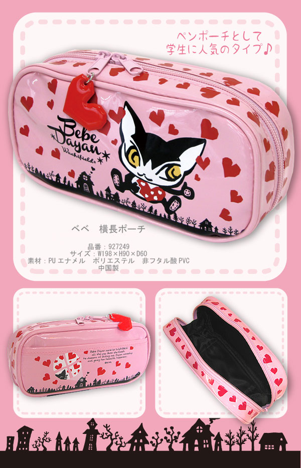PU エナメル ポリエステル 非フタル酸PVC W198×H90×D60mm ペンポーチとしても使えるベベダヤンのポーチ♪ 中国
